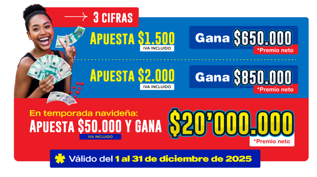 * En San Andrés y providencia el precio de la apuesta es de $3.362 (Exento de IVA)